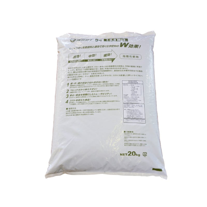 そこで当社の得意分野である発酵肥料に有機質肥料や速効的な化成肥料を配合する独自の製造方法により、「ボカセイ」を誕生させました。地力を作り、さらに速効力を持った「ボカセイ」は、安心・安全なことはもちろんの事、コストにも配慮した全く新しいタイプの肥料です。