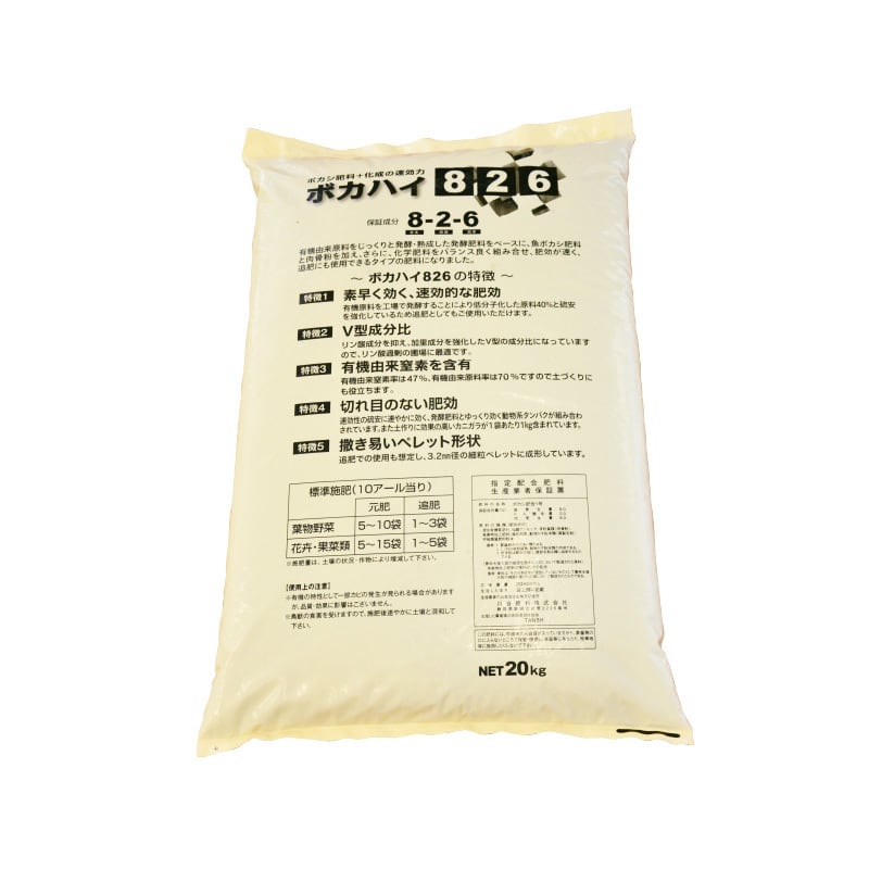 速効性の硫安に速やかに効く発酵肥料と、ゆっくり効く動物系タンパクが組み合わされています。また土作りに効果の高いカニガラが1袋当り1kg含まれています。
