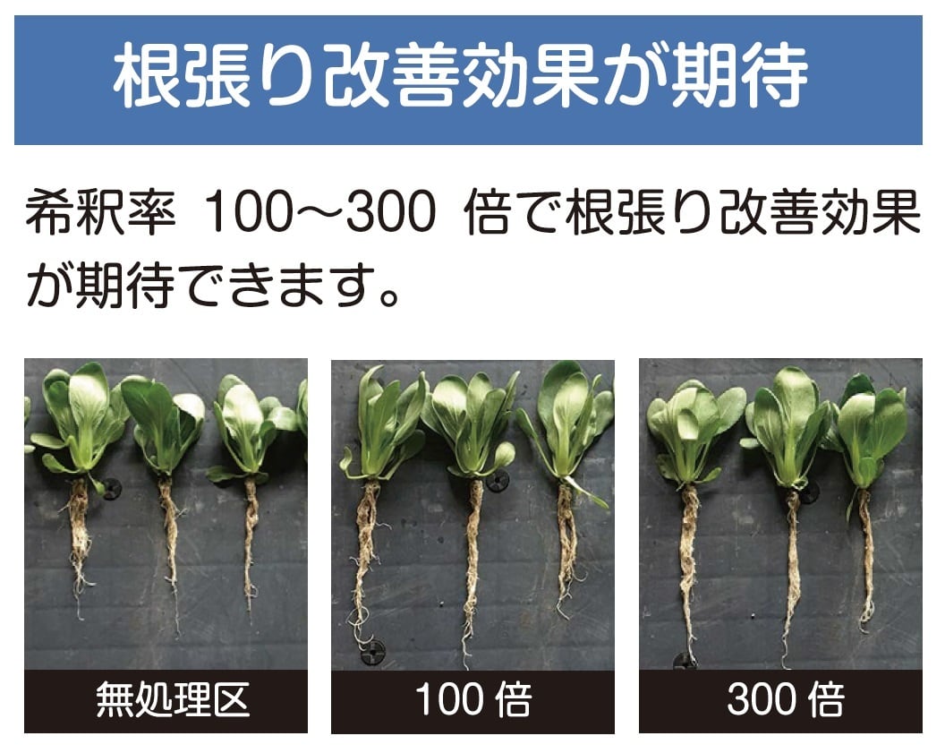 生育初期の灌注時に施用することで、初期の根張り改善効果が見込めます。